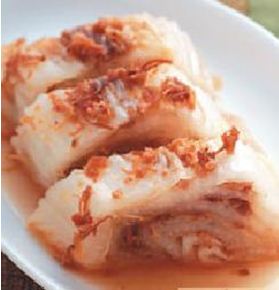 3.将作法2调好的酱料,均匀的涂抹在作法1的每一叶包心白菜的叶面上,切面朝下摆入盘中,放入锅内蒸约30分钟后,取出切成小段即可。