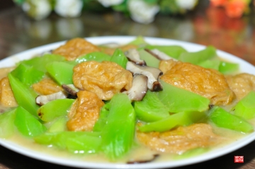 第五种:素菜菜谱丝瓜香菇油面筋做法