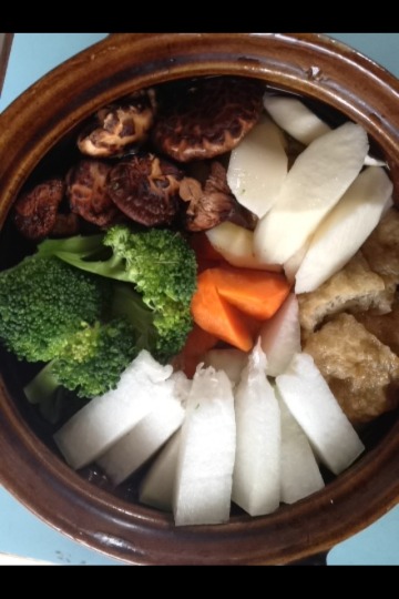 其实大同小异,亲们也可以选着自己喜欢的菜煲,比如现在外面有很多的素鸡腿、素肉,还有笋干、木耳、豆腐干。而且这样做的味道香甜可口,热量不高。