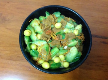 3、炒丝瓜,将熟时把其他材料汇在一起调适味,一款色香味全又营养的素菜就完成了。