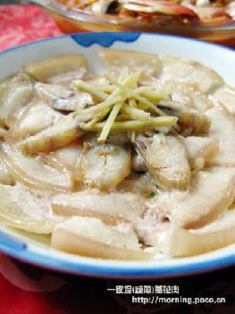 咸鱼适量,花肉150g,姜10g