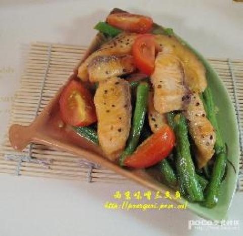 三文鱼,豆角,车厘茄,味噌,味琳,糖,黑椒,盐