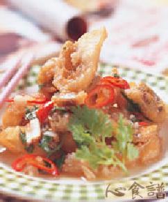 (1)鱼肉洗净,切长条,加腌料略腌片刻。
