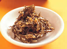 3.将小鱼干以180℃油锅炸酥,起锅前加入辣椒末再一起捞起,淋上作法2的糖浆再撒上作法1的白芝麻即可。