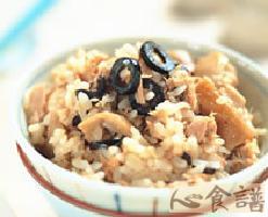 4.待电锅开关跳起后再闷5分钟,起锅后拌入鲔鱼肉、黑橄榄片即可食用。