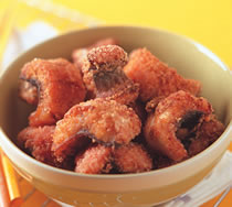 2.取出作法1的鳗鱼切小块,沾上地瓜粉,再用200℃的热油炸熟至酥即可食用。