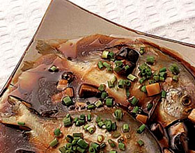 3.油、酱油、酒、黑醋、糖、香菇丁拌均匀,淋在鱼体上;