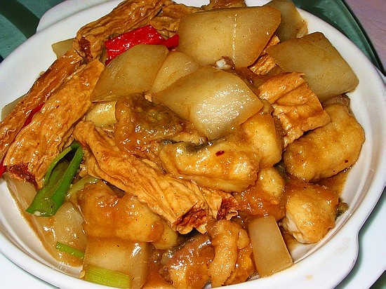 主料:鱼脯一斤,萝卜一斤,姜数片,蒜茸一汤匙,南乳半汤匙,磨鼓一汤匙葱三条切段,酒2汤匙,香菜2棵豆腐,盐,糖,生抽,老抽,果皮八角,生粉各适量
