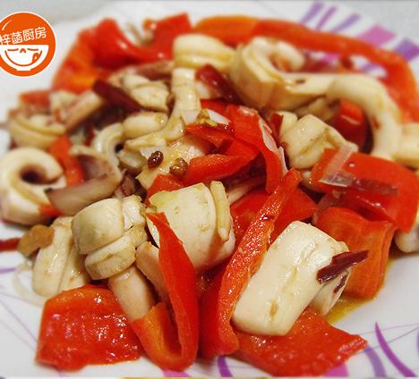 第一种:鱼类菜谱红菜椒爆鱿鱼做法