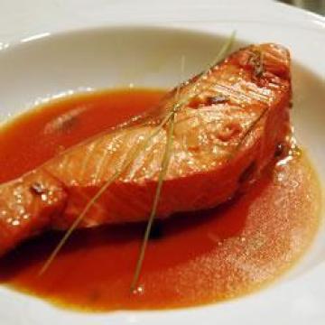 第三种:鱼类菜谱菇酒汁烧三文鱼做法