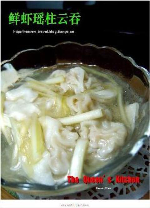 第一种:海鲜菜谱鲜虾瑶柱云吞做法