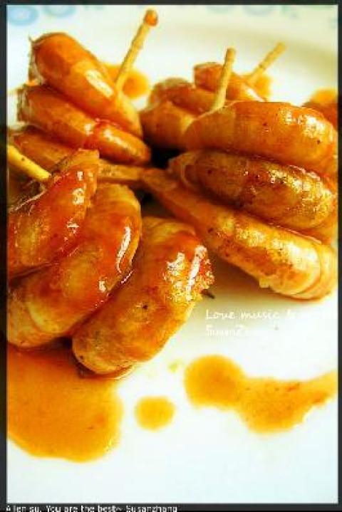第三种:海鲜菜谱荷香盐焗串虾做法