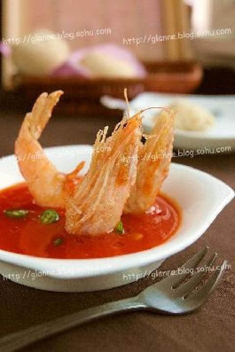 第一种:海鲜菜谱酥炸大虾配茄汁做法