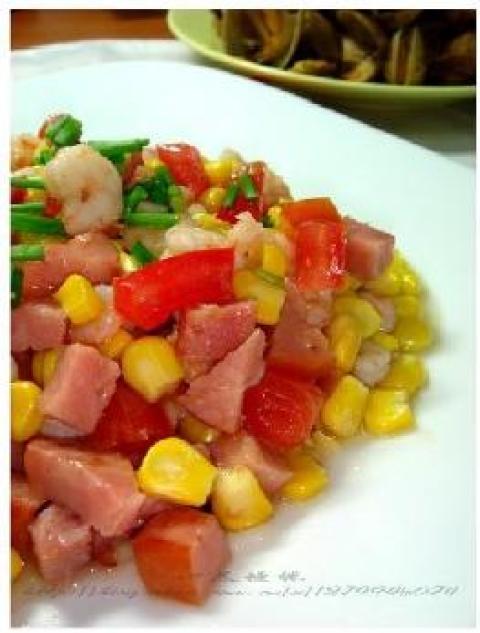 第一种:海鲜菜谱熏肠玉米虾仁做法