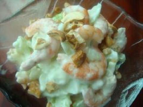 熟虾仁,盐味腰果,西芹,蛋黄酱,原味酸奶适量