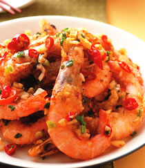 翠玉蟹脚肉、香料醋汁鲜虾、泰式虾仁羹、咖哩茄汁烩鲜虾、清蒸沙虾