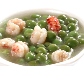 主料:虾仁300克,鲜豌豆100克,
