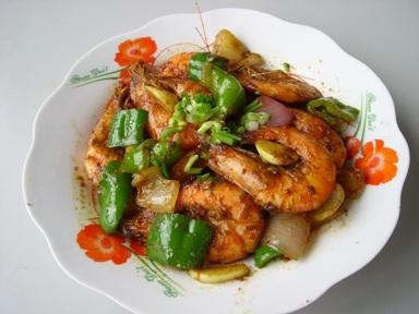 第一种:海鲜菜谱吮指咖喱虾做法