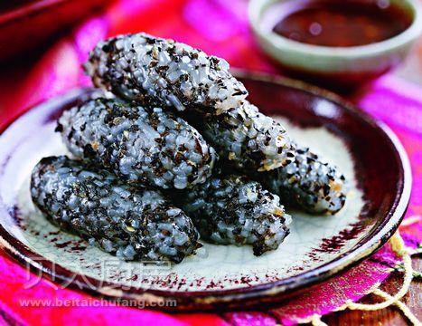 3、从大团上揪下一小块,用手捏成海参的形状装盘,把盘放入蒸锅内,水开后蒸10分钟即可。蒸好的糯米海参可以蘸着香菇小料吃。