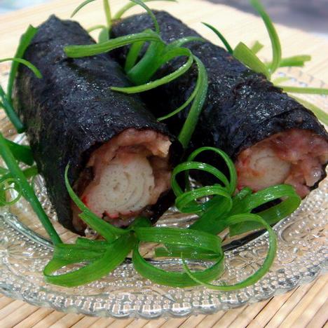 第一种:海鲜菜谱紫菜蟹柳卷做法