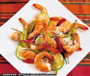 草虾、基围虾等都可以用来做泡虾。其中的青柠檬也可以用黄柠檬来代替。