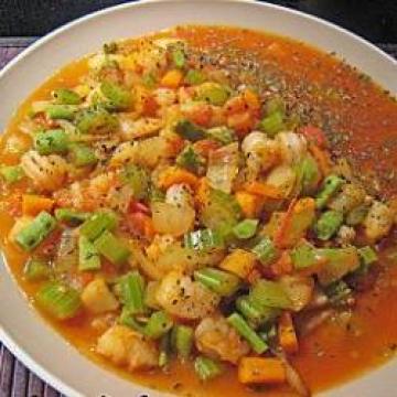 主材:,大熟虾8只,切粒,中型洋葱1个,切粒,四季豆粒150克,西芹1根,大蕃茄1个,切丁,胡萝卜1根,切丁,油适量,汁料:份量仅供参考,蕃茄汁4汤匙,水240毫升,糖2汤匙,盐1茶匙