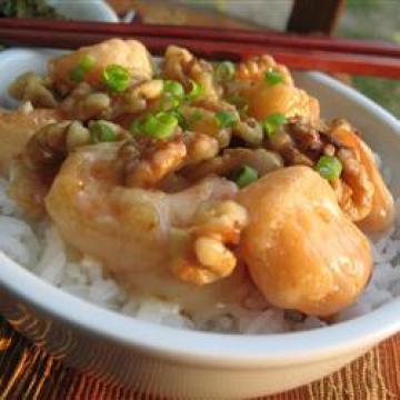 第一种:海鲜菜谱蜜汁胡桃虾做法