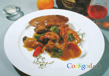 (2)用黄油炒香洋葱末、蒜泥,加入咖喱,煸香后投入蟹块,加入白酒、鱼汤、青红椒及盐、胡椒,煨烧至蟹肉成熟;蟹盖用开水烫至变色。