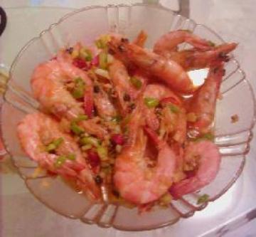 1.将虾洗净,放入姜片,花椒,盐,味精,料酒,椒盐腌制半小时左右。再将虾洗净滤干待用。