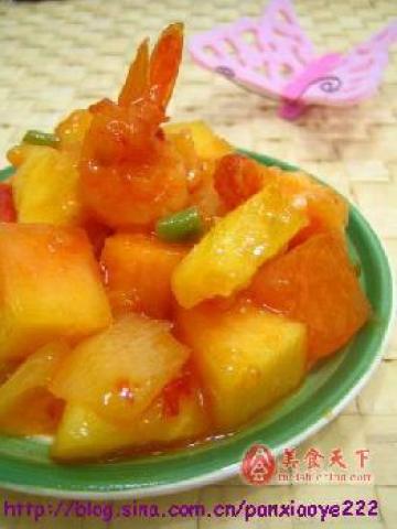 第三种:海鲜菜谱泰国风味的木瓜菠萝甜辣虾做法