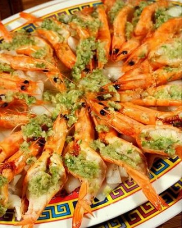 第一种:海鲜菜谱蒜茸虾蒸河粉做法