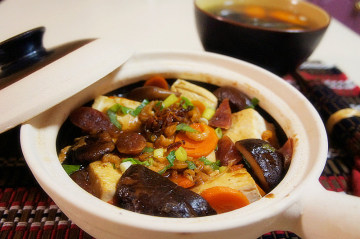 第一种:海鲜菜谱冬菇虾米豆腐煲做法