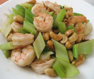 第一种:海鲜菜谱腰果西芹虾仁做法