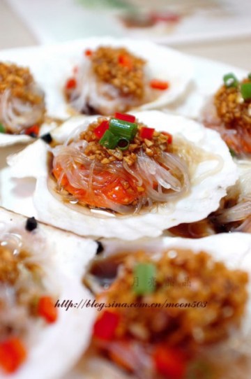 第五种:海鲜菜谱剁椒版蒜茸粉丝蒸扇贝做法