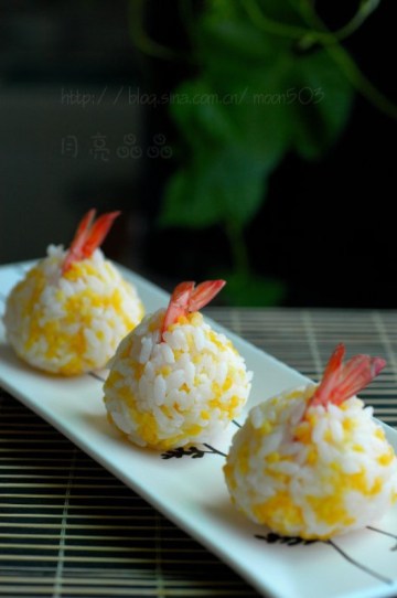 第一种:海鲜菜谱凤尾虾寿司饭团做法