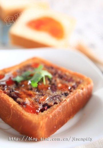 7.将馅料涂抹于吐司凹槽中抹平,即为虾托