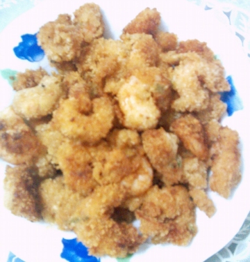 4)锅里放多油,油热后放入大虾用中火炸呈金黄色即可。