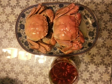 螃蟹(阳澄湖大闸蟹)姜 黄酒(也可以用干白代替嘿嘿)醋 酱油