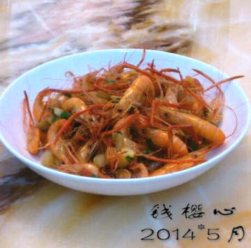 第一种:海鲜菜谱葱爆河虾做法