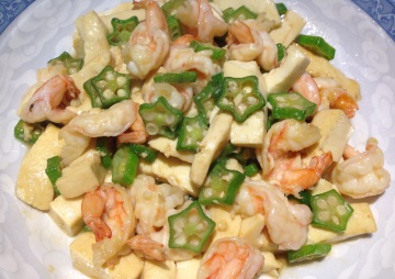 第一种:海鲜菜谱秋葵虾仁豆腐做法