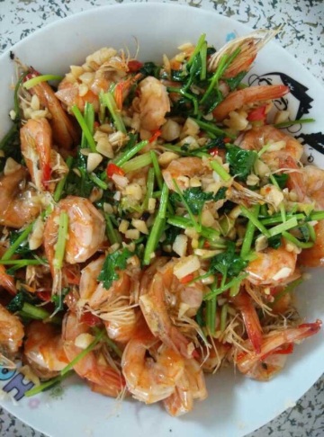 大虾,蒜蓉,香菜,啤酒,红尖椒