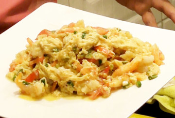 第一种:海鲜菜谱蟹肉虾仁滑蛋做法