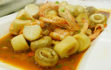 第一种:海鲜菜谱蘑菇鸡丁虾做法