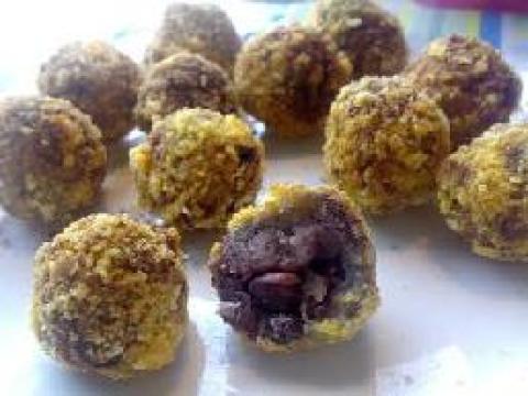 9.将土司蜜豆团子依次均匀沾上低筋面粉...鸡蛋液...酥炸粉或面包糠.结束.