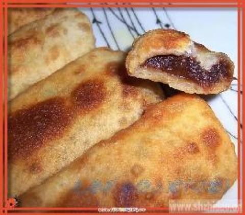 3、油温七成熟,下入春卷炸至两面金黄色捞出,口感很像派哦!