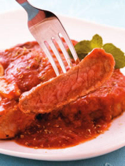 菲力牛肉2片,蒜头2粒,红辣椒1/2条,橄榄油20㏄,俄立岗粉20公克,调味蕃茄酱200公克,盐适量,白胡椒粉适量