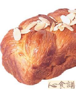 高筋面粉329公克,低筋面粉141公克,速溶酵母9公克,盐7公克,糖56公克,冰水212㏄,奶粉28公克,蛋71公克,奶油56公克,裹入油226公克,装饰:少许,全蛋液少许