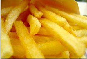 2、锅内注油烧至五成热,下入薯条,用小火慢炸,炸至金黄色取出装盘。